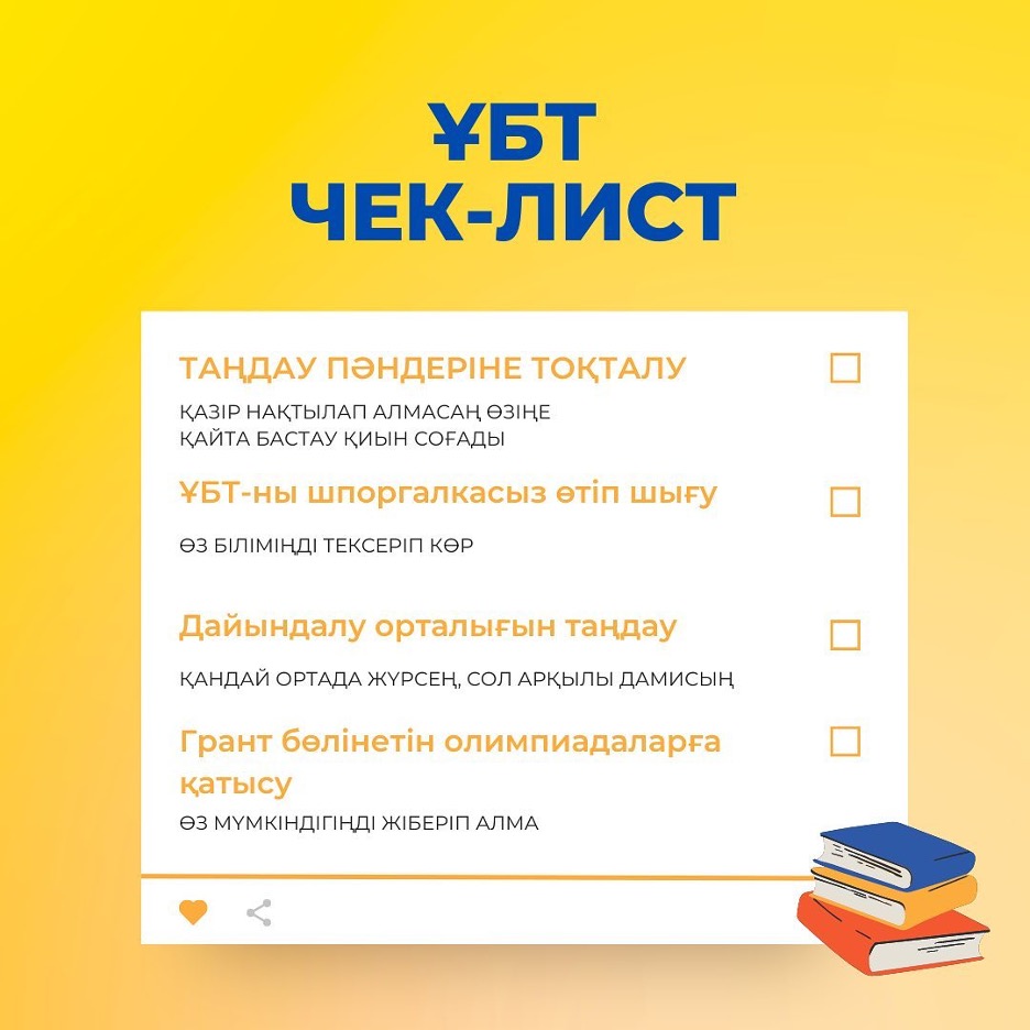 ҰБТ – тек өмірдің бір кезеңі. Ол болашақты толық анықтамайды, бірақ еңбекқорлыққа, жауапкершілікке және өз қабілетіңді дұрыс бағалауға үйретеді. Сондықтан дайындық кезінде стресс емес, жылы сезімдер мен позитивті естеліктер қалдыруға тырысу керек.