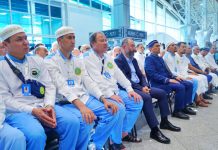 Сәрсенбіде бас мүфти Наурызбай қажы Тағанұлы бастаған ҚМДБ өкілдері қажылыққа аттанған қазақстандықтардың алғашқы легін Алматы әуежайынан шығарып салды.
