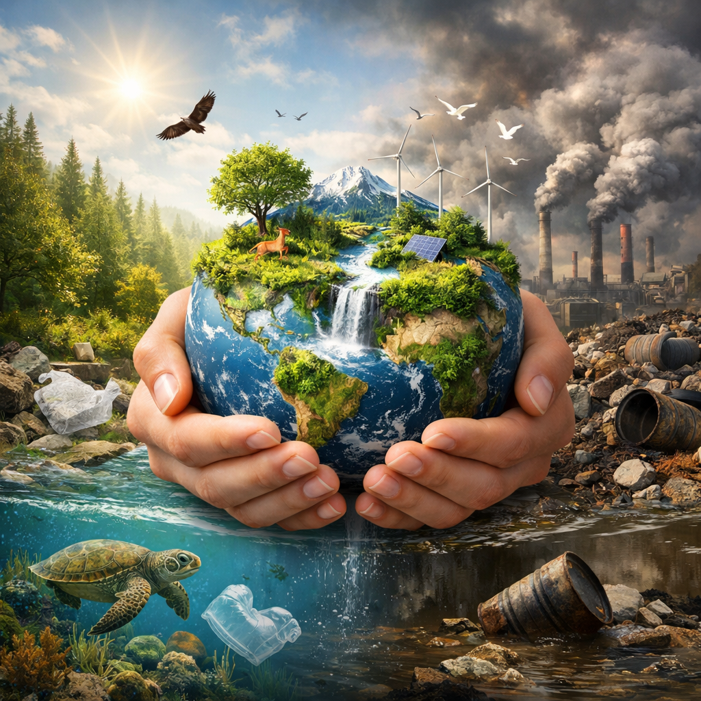 Ең өзекті мәселелердің бірі – экологиялық жағдайдың нашарлауы. Адамдардың табиғатты шамадан тыс пайдалануы салдарынан ауа ластанып, су көздері азайып барады. Ормандардың жаппай кесілуі, өндіріс қалдықтарының көбеюі және қоқыстың дұрыс жиналмауы қоршаған ортаға үлкен зиян келтіруде. Климаттың өзгеруі нәтижесінде құрғақшылық, су тасқыны және түрлі табиғи апаттар жиілеп кетті. Мұның бәрі адам денсаулығына және болашақ ұрпақтың өміріне қауіп төндіреді.