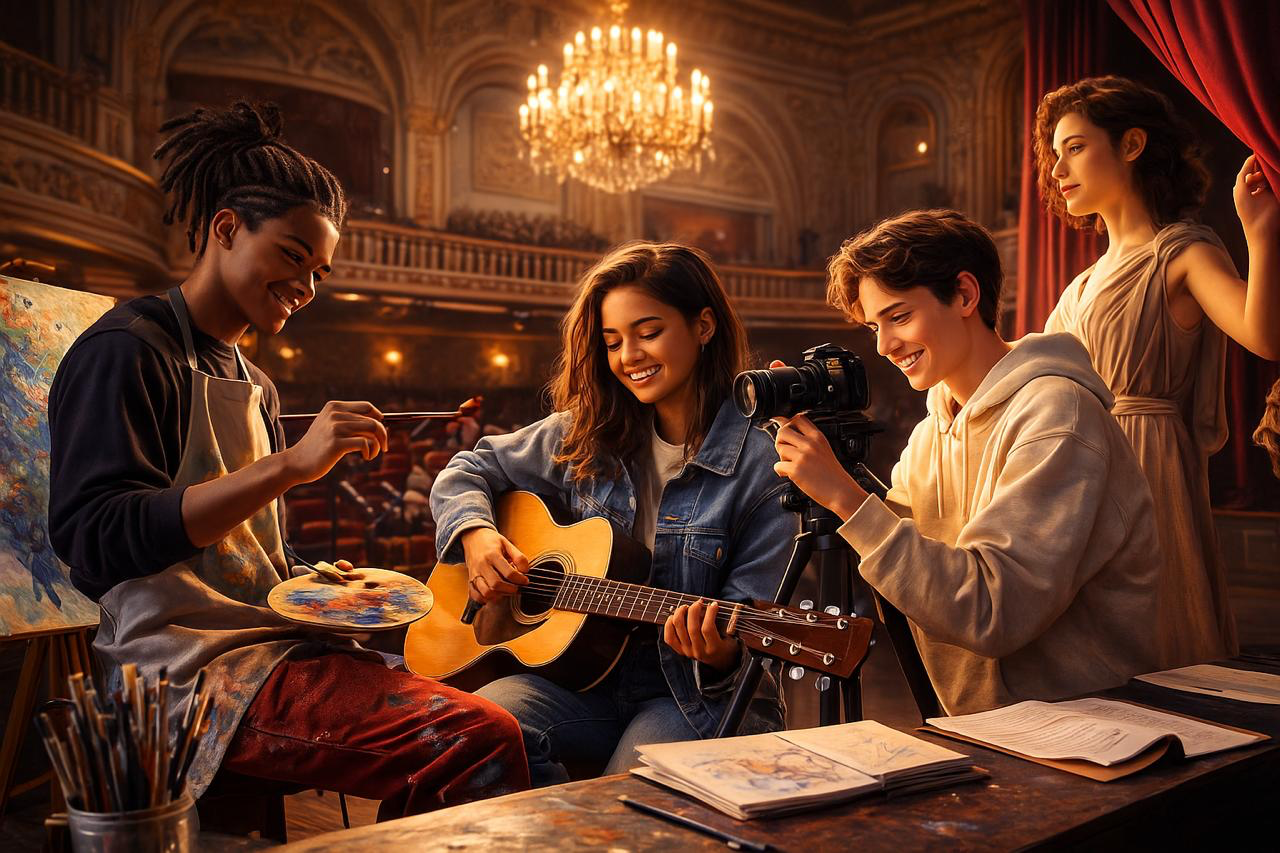 Қазіргі жастар арасында өнер мен шығармашылыққа қызығушылық мәдени орта, бейіндік пәндер, үйірмелер мен заманауи жастар қозғалысы арқылы артуда. Мысалы, UNESCO клубтары, Қазақстанның әр білім ошақтарындағы өнер бағытындағы үйірмелер, жеке дара өнер дамыту клубтары жастардың мәдени және эмоционалды дамуына ықпал етеді. Актерлік шеберлік курстары мен театр сахналары жасөспірімдерге өздерін шығармашылық тұрғыдан көрсетуге мүмкіндік береді.